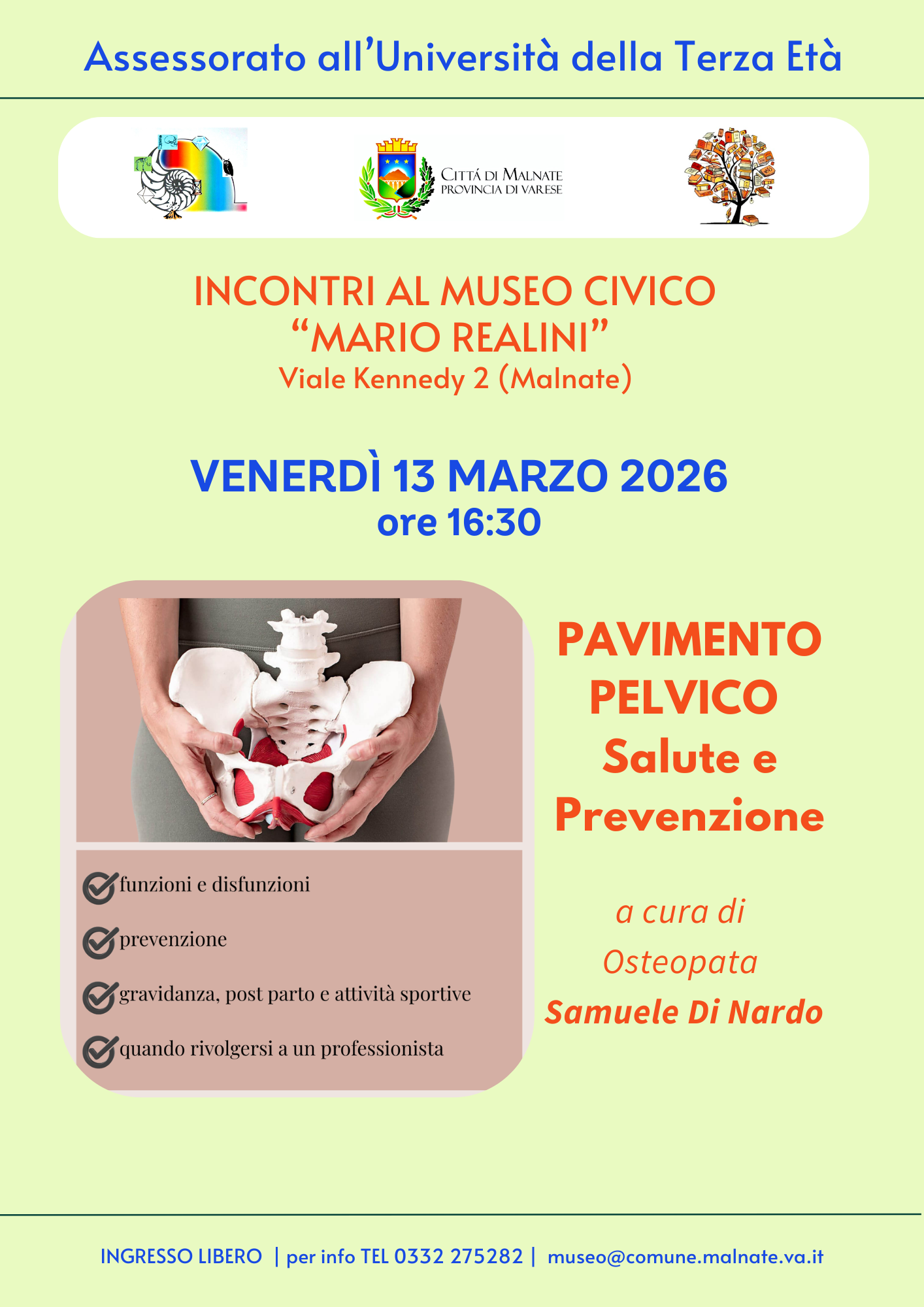 Venerdì 13 Marzo 2026 ore 16.30 Pavimento pelvico salute e prevenzione , Con l’Osteopata Samuele Di Nardo |