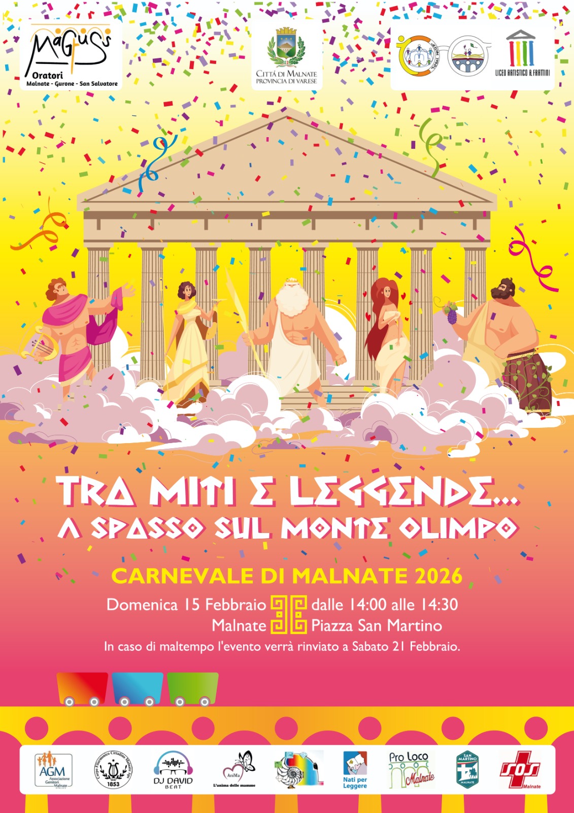 Carnevale Malnate 2026 “Tra miti e leggende …a spasso sul monte olimpo”