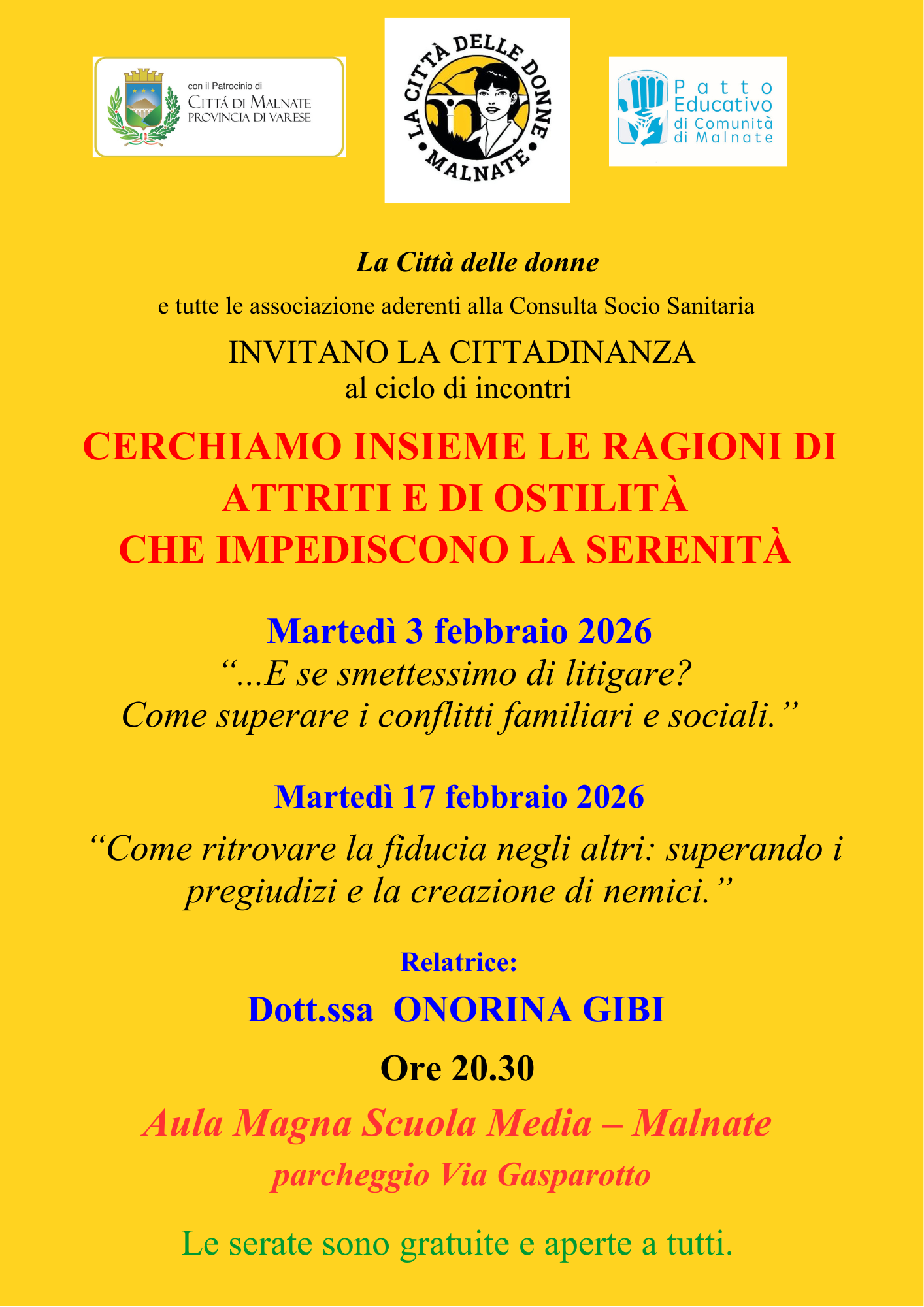 La Città delle donne con il patrocinio del Comune di Malnate e del Patto Educativo