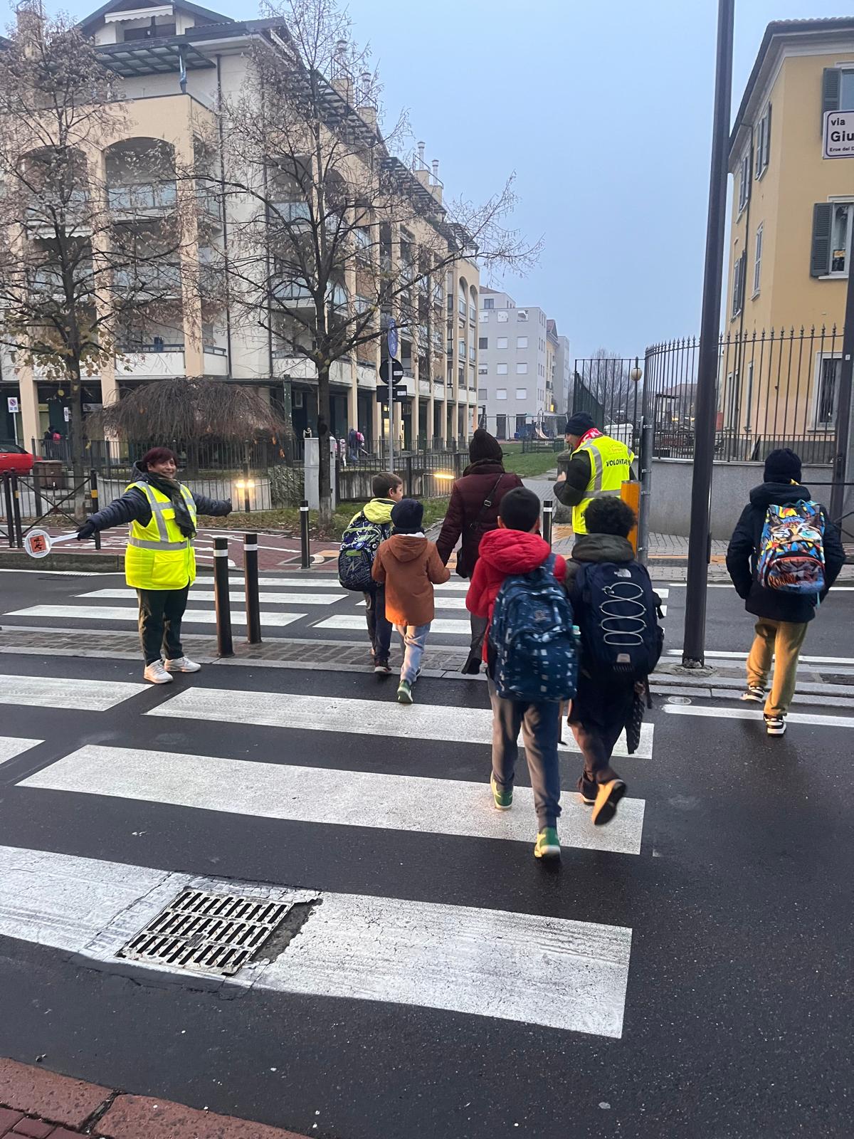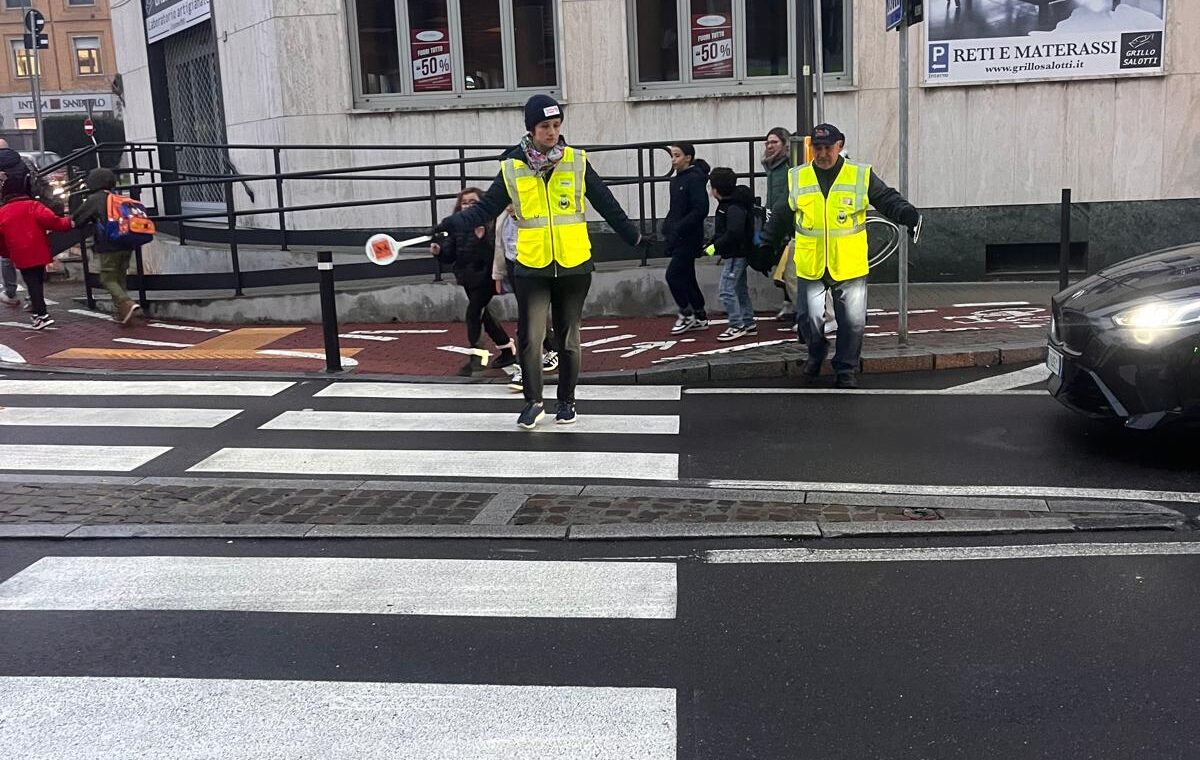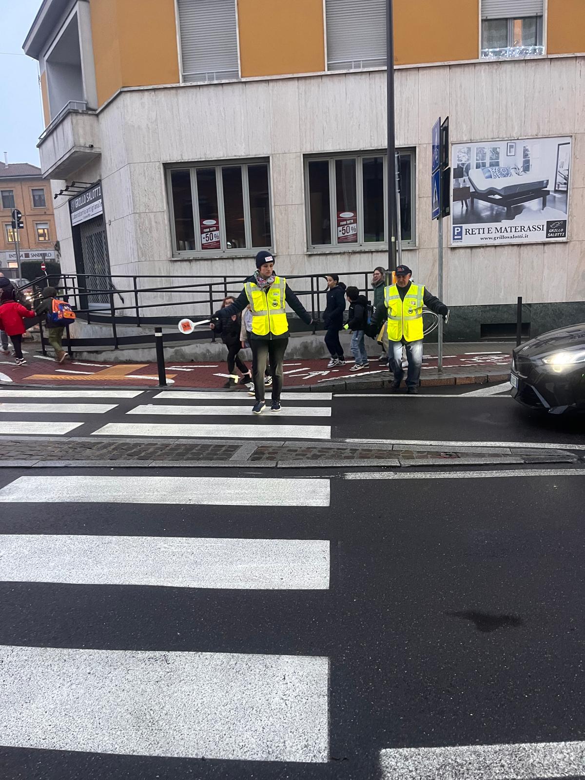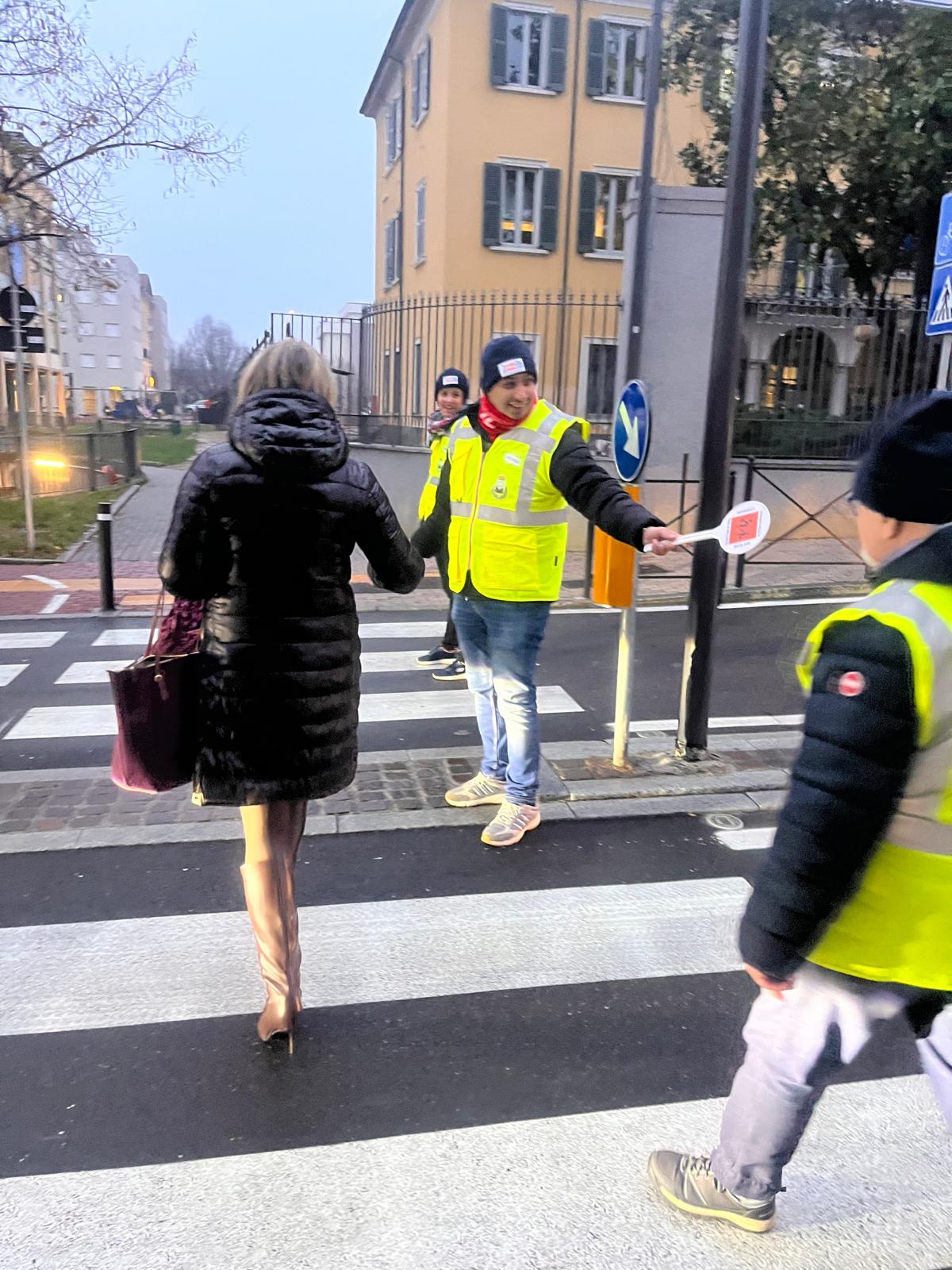 I bambini hanno incontrato i Nonni Vigili, affiancati da un gruppo di ragazzi de La Finestra che, con paletta e giacchino, si sono calati con entusiasmo nel loro ruolo di supporto ai volontari che ogni giorno presidiano i percorsi casa–scuola.