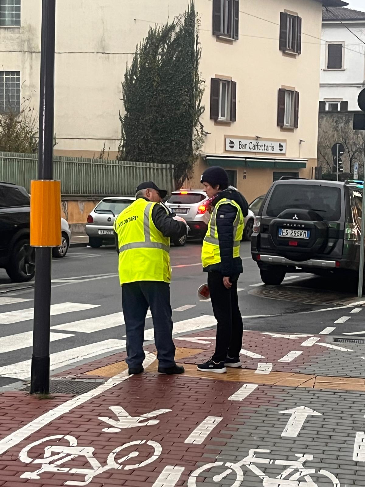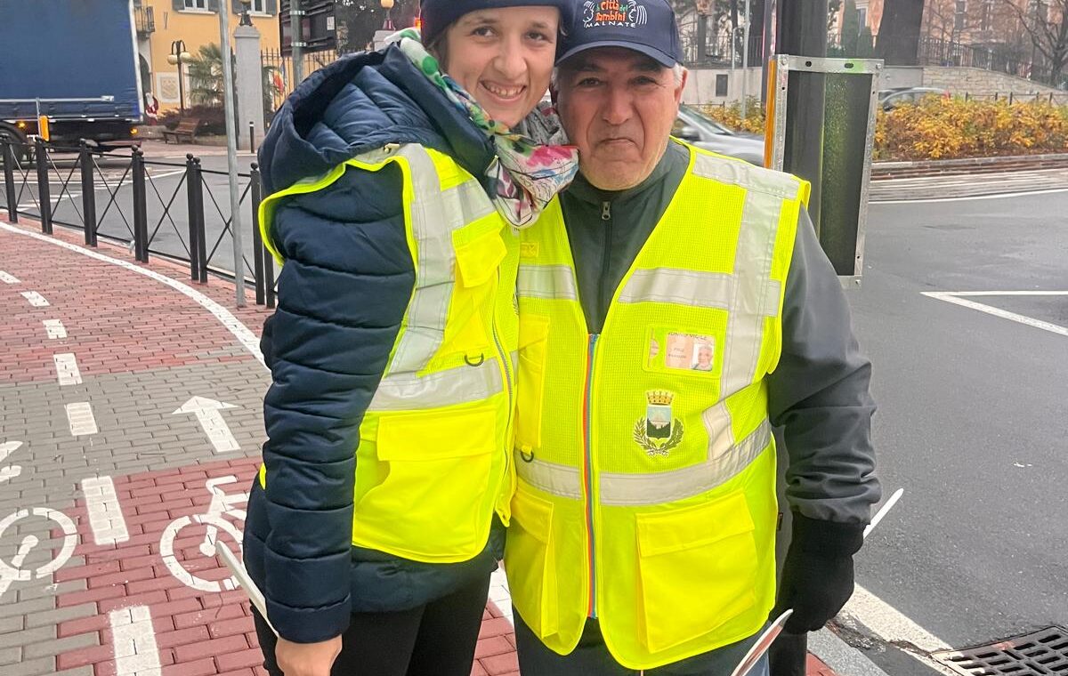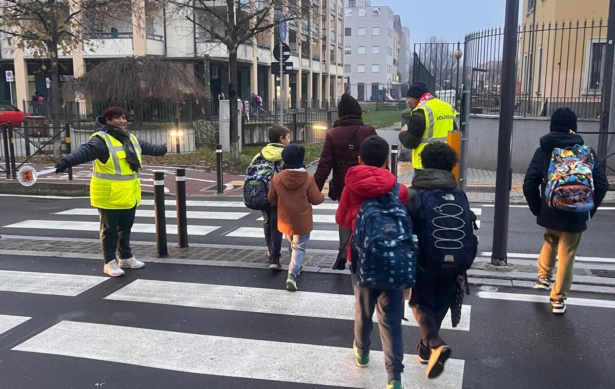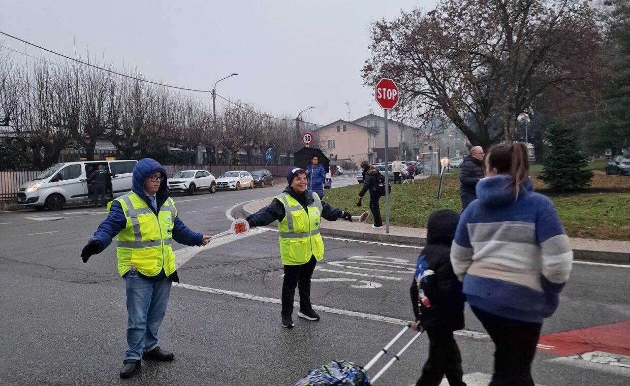 I bambini hanno incontrato i Nonni Vigili, affiancati da un gruppo di ragazzi de La Finestra che, con paletta e giacchino, si sono calati con entusiasmo nel loro ruolo di supporto ai volontari che ogni giorno presidiano i percorsi casa–scuola.