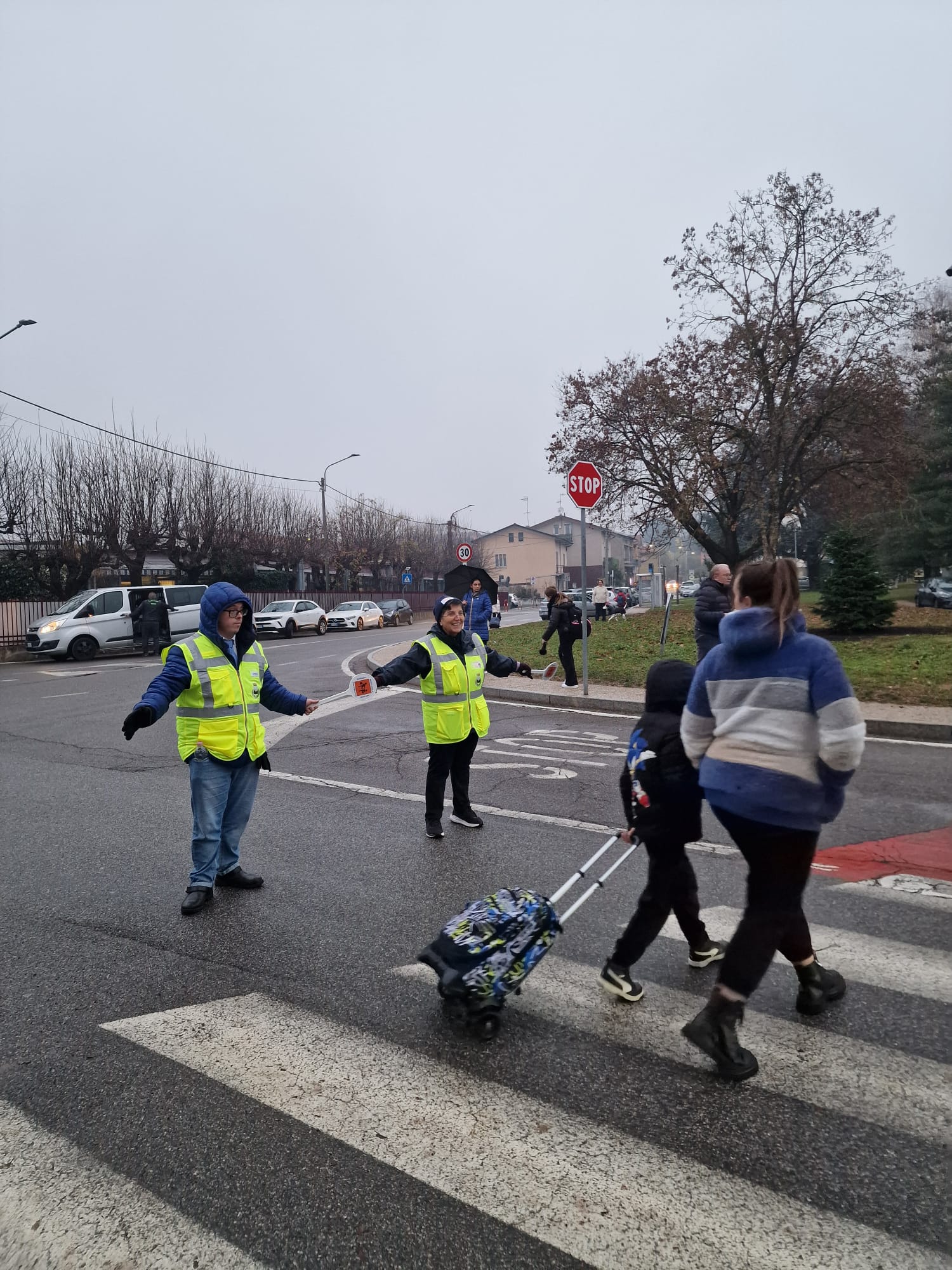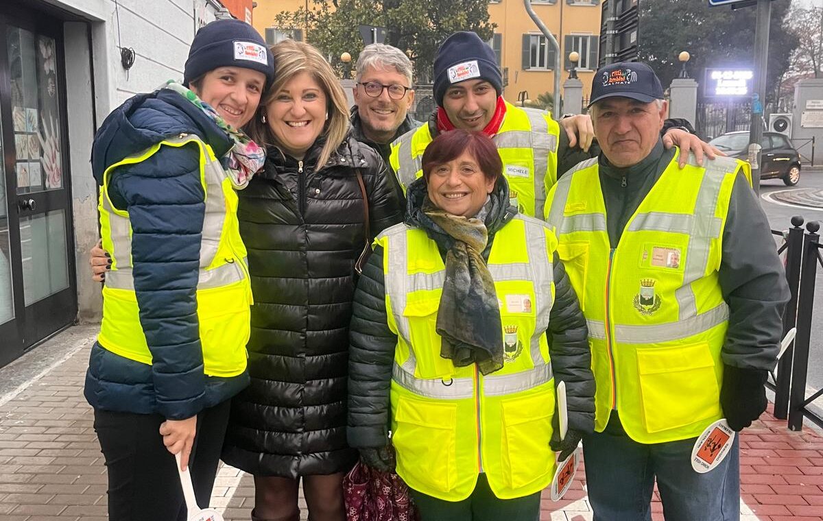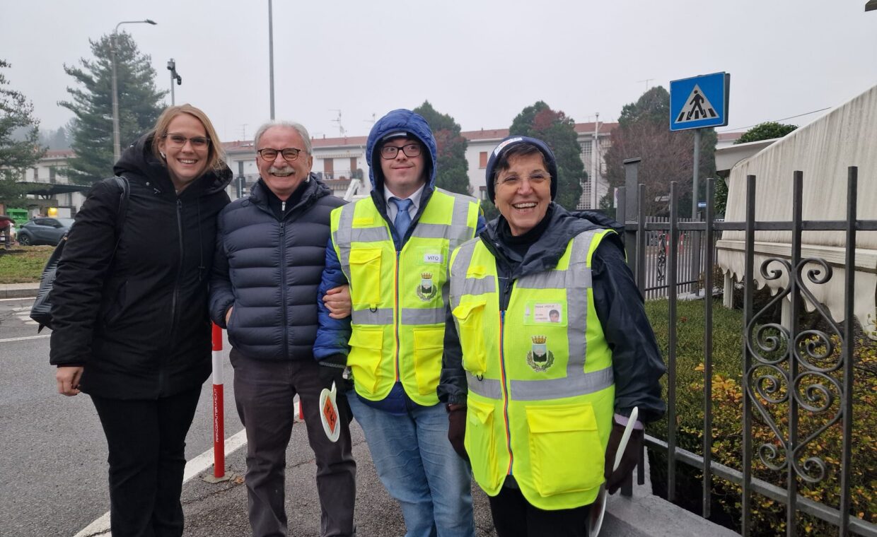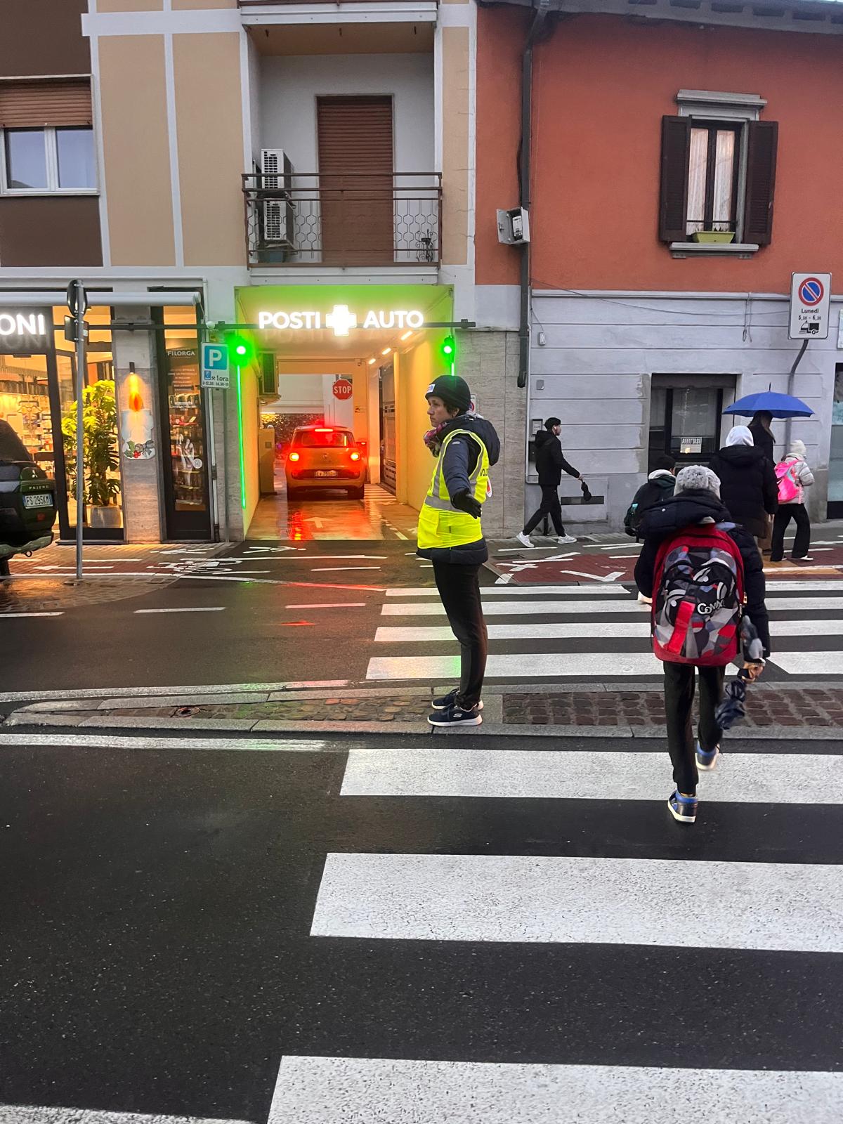 I bambini hanno incontrato i Nonni Vigili, affiancati da un gruppo di ragazzi de La Finestra che, con paletta e giacchino, si sono calati con entusiasmo nel loro ruolo di supporto ai volontari che ogni giorno presidiano i percorsi casa–scuola.
