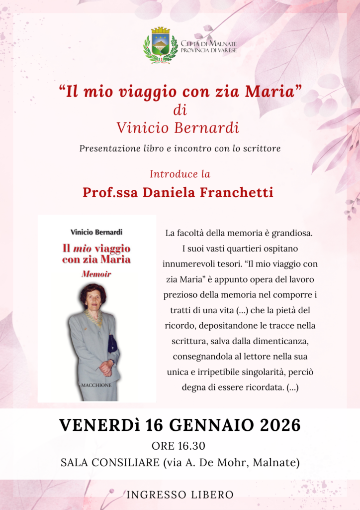 VENERDì 16 GENNAIO 2026 ORE 16.30 SALA CONSILIARE (via A. De Mohr, Malnate)