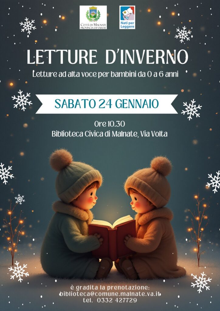 Nati per leggere: Letture d’inverno Sabato 24 gennaio 2026 alle ore 10.30 presso la Biblitoeca Civica di Malnate (via Volta)