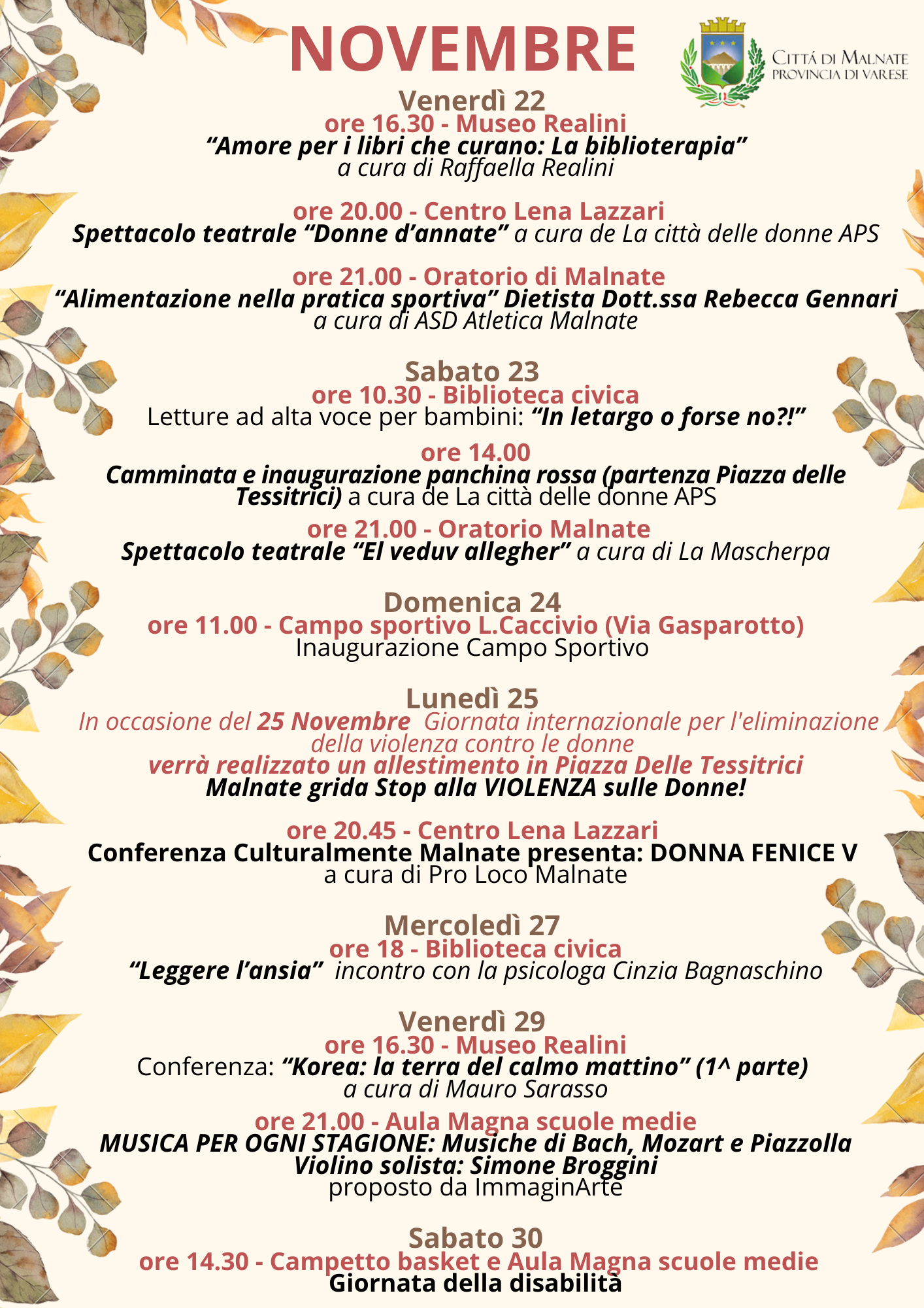 CALENDARIO EVENTI CULTURALI MESE DI NOVEMBRE