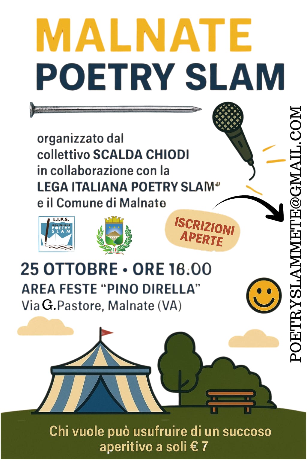 Una competizione poetica a colpi di versi; un pomeriggio interattivo e coinvolgente, dove il pubblico gioca un ruolo attivo nel processo di valutazione. Il Collettivo Scalda Chiodi organizza l’evento Poetry Slan e vi aspetta sabato 25 ottobre 2025, alle ore 16.00, presso l’Area Feste “Pino Dirella”, a Malnate in via Pastore.
