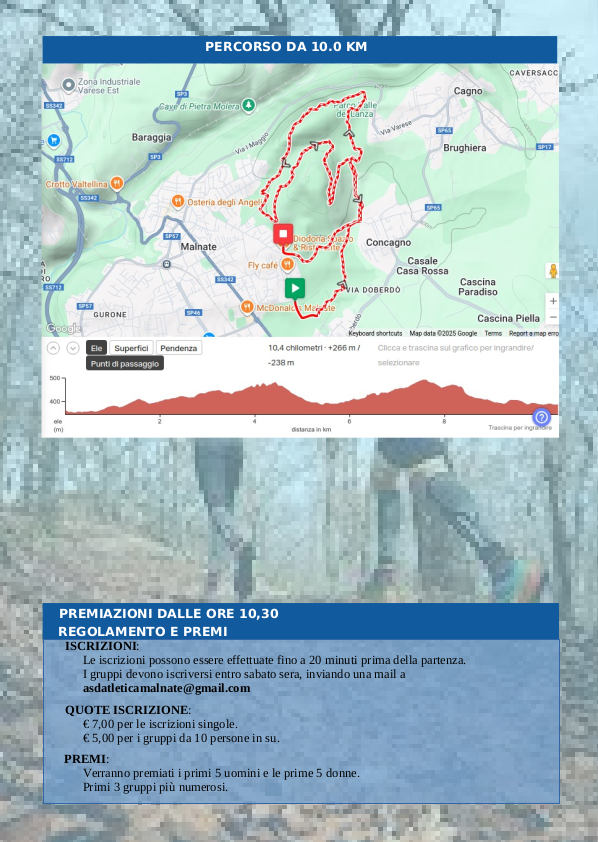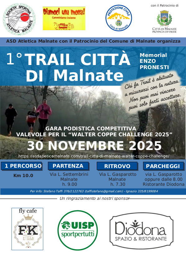 Domenica 30 settembre si svolgerà il primo Trail della Città di Malnate, una gara podistica competitiva , valevole per il “Walter Coppe Challenge 2025”, a cura di ASD Atletica Malnate.
