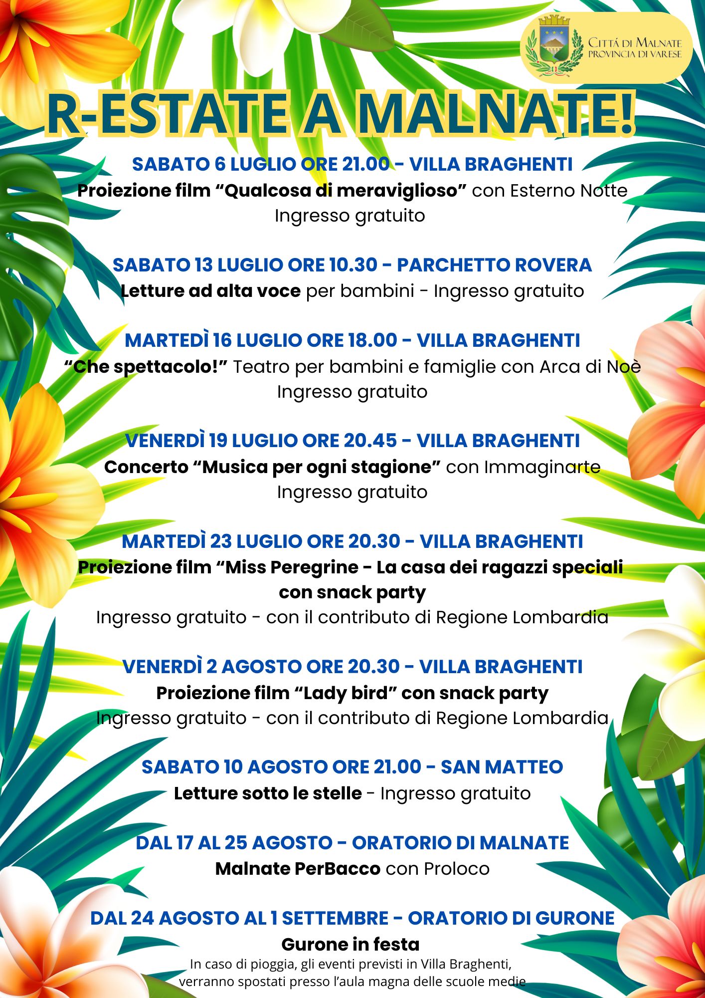 ** In caso di pioggia, gli eventi previsti in Villa Braghenti, verranno spostati presso l’aula magna delle scuole medie