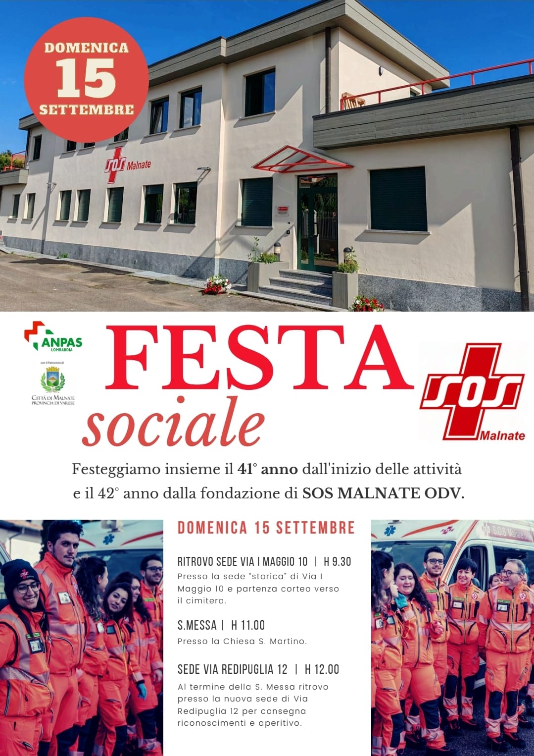 Festeggiamo insieme il 41° anno dall’inizio delle attività e il 42° anno dalla fondazione di SOS MALNATE ODV.