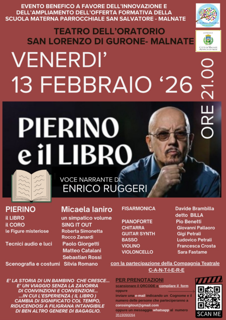Spettacolo Promosso dalla Scuola dell’infanzia San Salvatore Venerdì 13 Febbraio 2026 alle ore 21.00 presso teatro oratorio San Lorenzo di Gurone