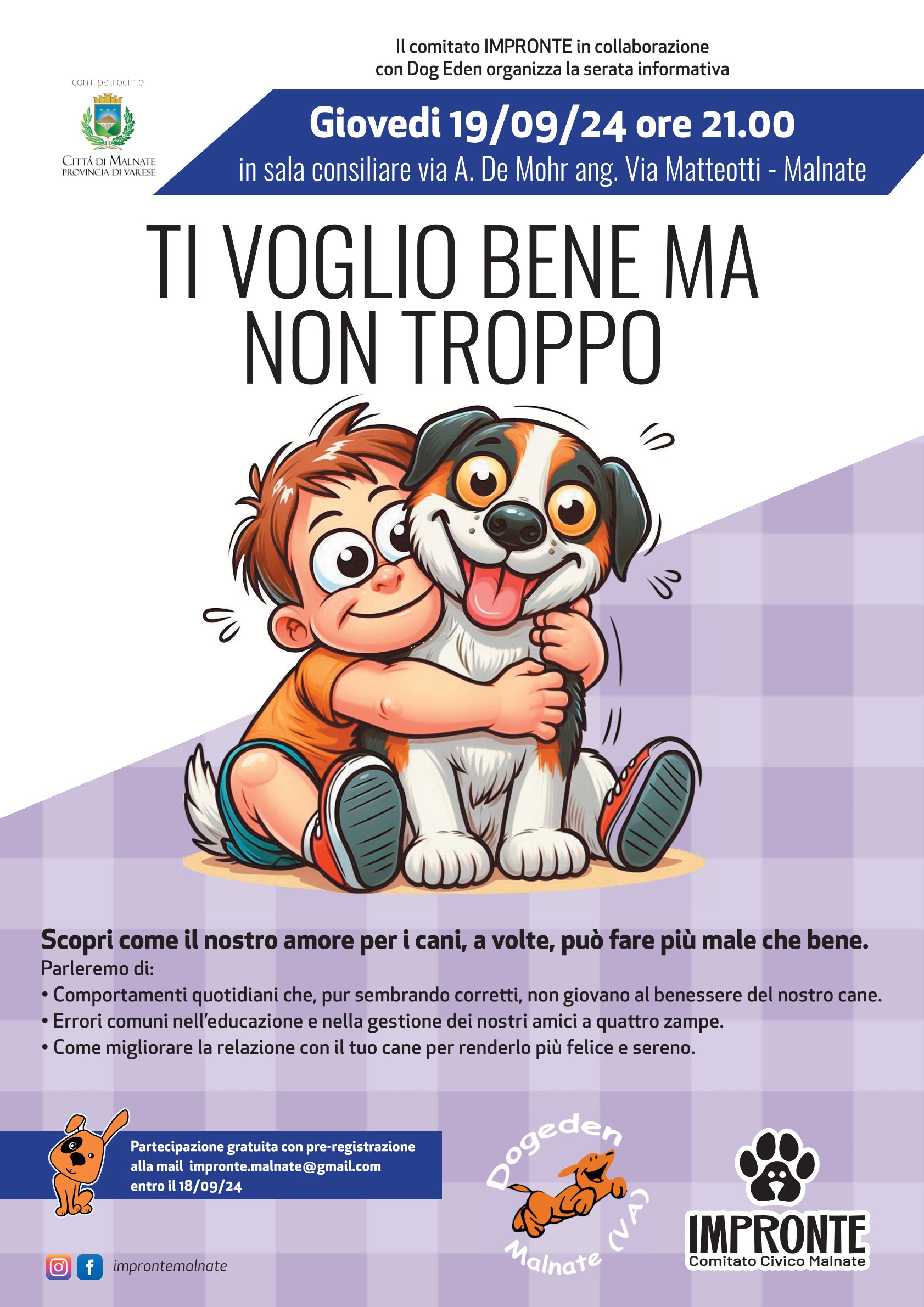 Il comitato IMPRONTE in collaborazione con Dog Eden e con il patrocinio del Comune di Malnate
