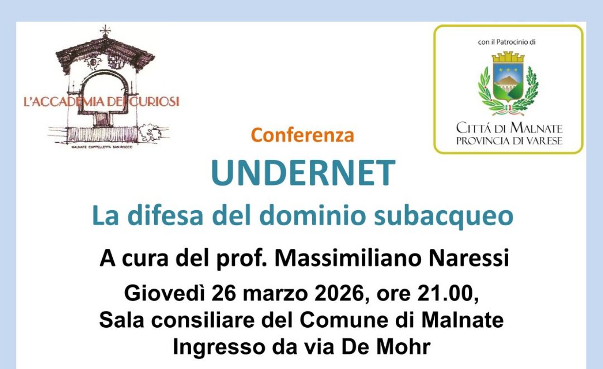 Undernet La difesa del dominio subacqueo. Giovedì 26 Marzo 2026 alle ore 21.00 presso la sala consiliare (via A. De Mohr Malnate)