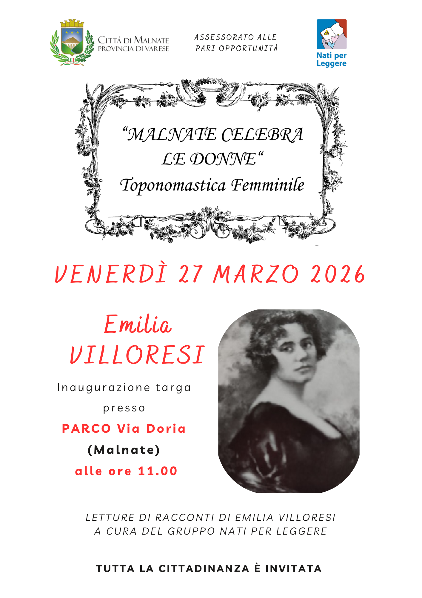 Inaugurazione targa dedicata a Emilia VILLORESI presso PARCO Via Doria (Malnate) alle ore 11.00 |