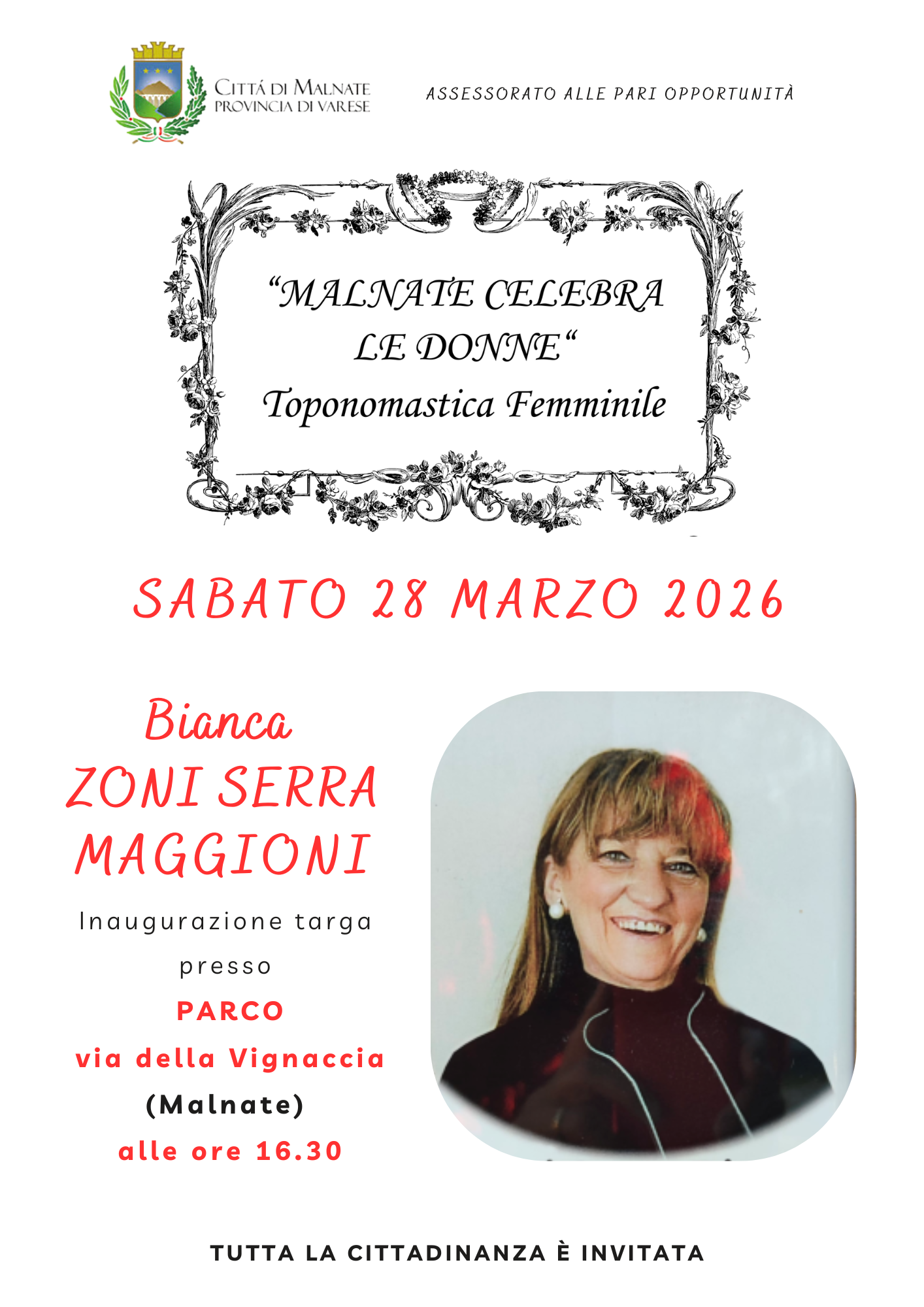 Inaugurazione targa dedicata a Bianca ZONI SERRA MAGGIONI presso PARCO via della Vignaccia (Malnate) alle ore 16.30 |